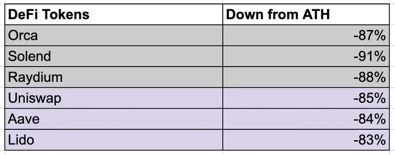 虽然有人可能会说 Solana DeFi 代币的价格大幅下跌,但以太坊的 DeFi 蓝筹代币也是如此,这本质上是治理代币价值累积的结构性问题。