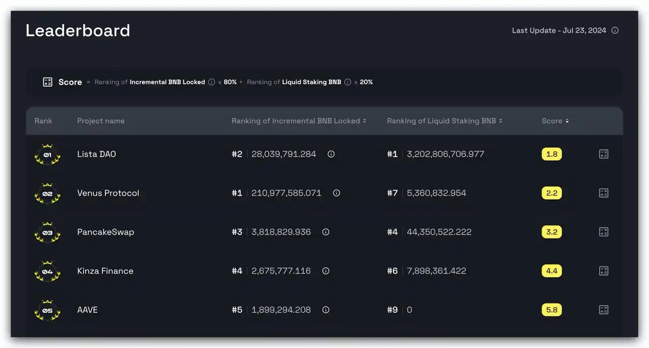 而在 BSC 生态,7 月 30 日,Binance 发布公告宣布自下一个 Launchpool 起,Binance Web3 钱包的 DeFi BNB 资产将计入 Launchpool 奖励计算。第一个官宣的资产就是 BSC 生态头牌 DeFi 项目 Lista DAO 推出的流动性质押代币 slisBNB。