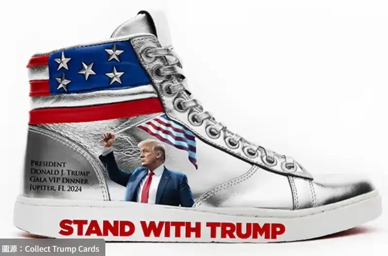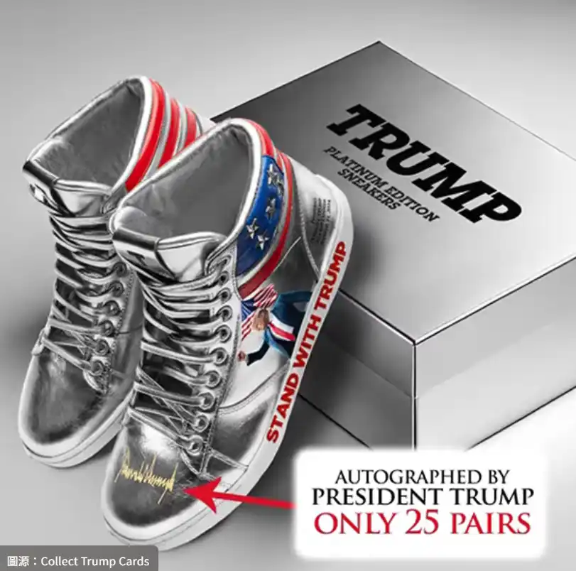 川普亲笔签名的限量版「与川普同在」白金高筒运动鞋