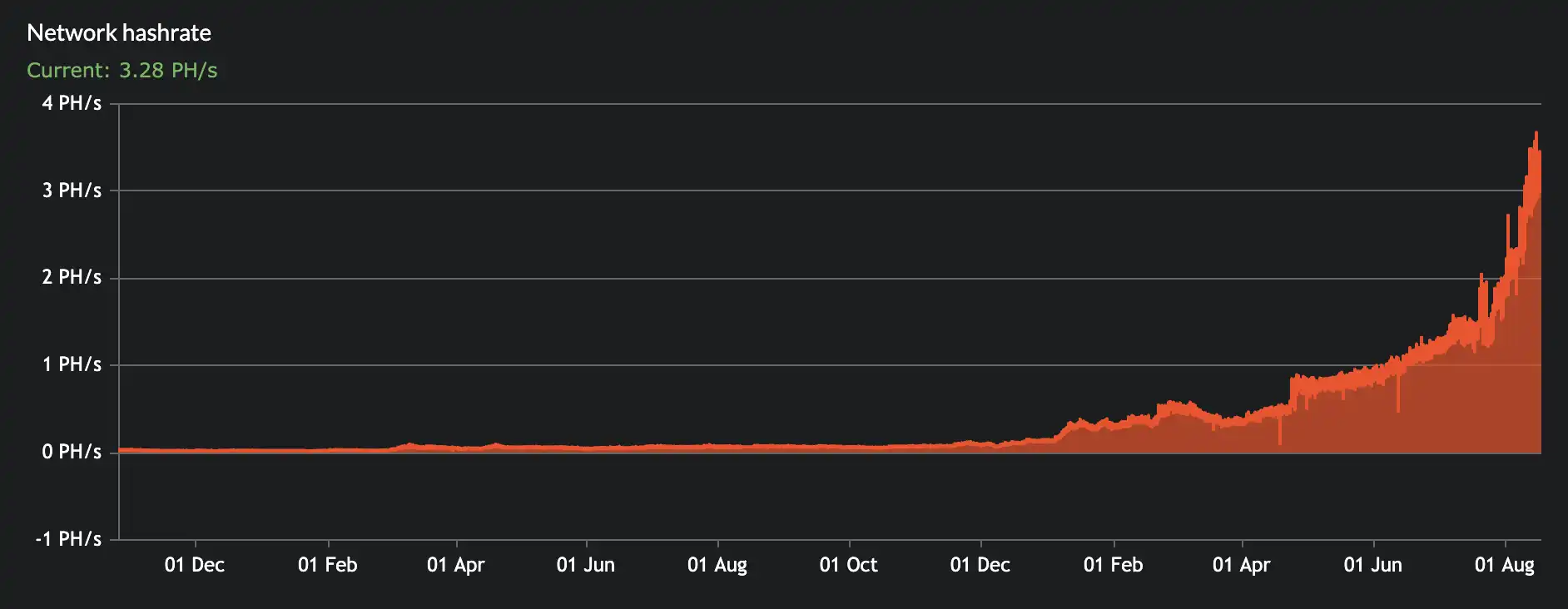生态爆发直接推动了市场对代币的需求增加。作为 PoW 公链,Alephium 的 86% 代币均通过挖矿产出,代币价格的暴涨激励着矿工大量入场,hashrate.no 数据显示,Alephium 全网算力已从年初的 0.14 PH/s 上涨至 3.2 PH/s,增幅超过 21 倍。
