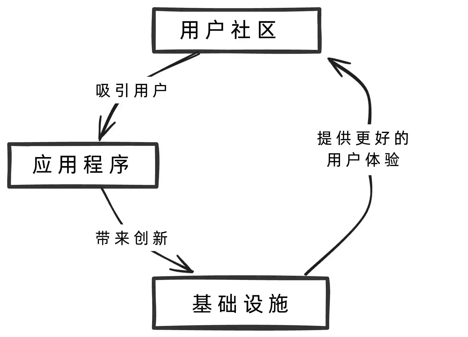 每个人都希望在用户已经存在的地方与他们互动。当社区成员宣传你的项目时,这传递了一个信号,降低了应用开发者和基础设施提供者加入你生态系统的决策不确定性。这些新的基础设施和应用吸引了新的社区成员和用户,良性循环再次出现。