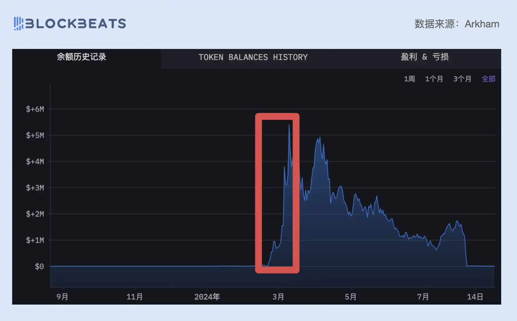 比如这个以太坊地址「0x384c7EbF6e87FE9816a2a23487042d33f2c04343」,在短短 20 天内从不名一文到浮盈超过 500 万美元。BlockBeats 基于链上数据分析工具 GMGN 统计了该地址(下文就叫它「巨鲸哥」)这一年多来全部的历史交易记录,试图从链上数据的角度为你揭示它的发家历程,或许我们的读者受到启发有朝一日也能成为这样一个传奇交易员。