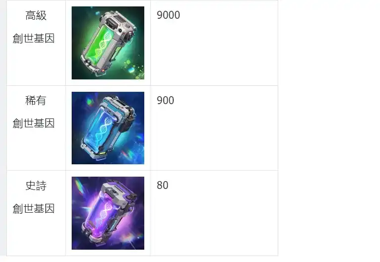 创世基因有三种等级,分别是高级、稀有、史诗。