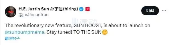 Justin Sun:SunPump上即将推出新功能「SUN BOOST」