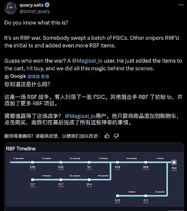 ● @const_quary 称获得了内存池跟踪器,在收集页面上添加了所有 rbf 交易。从那里开始,你不需要知道如何狙击,你只需像在普通市场上一样将价格最优惠的商品添加到购物车中,点击购买,然后你就是一个狙击手。