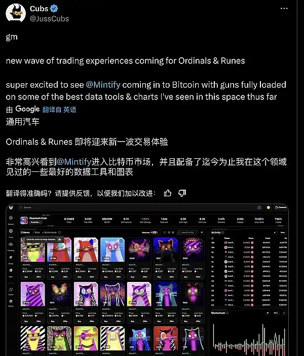 ● EVM NFT 平台 @Mintfy 进入 BTC ordinals 市场,专业干净的界面。