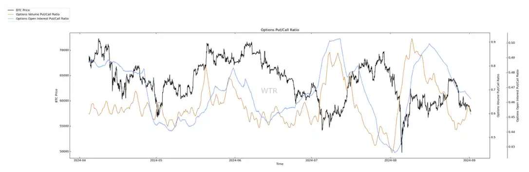 期权成交量,看跌期权比例均少量下降。