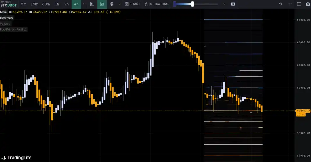 观察筹码分布图,在约 59000 附近有大量筹码成交,将有⼀定的支撑或压力。