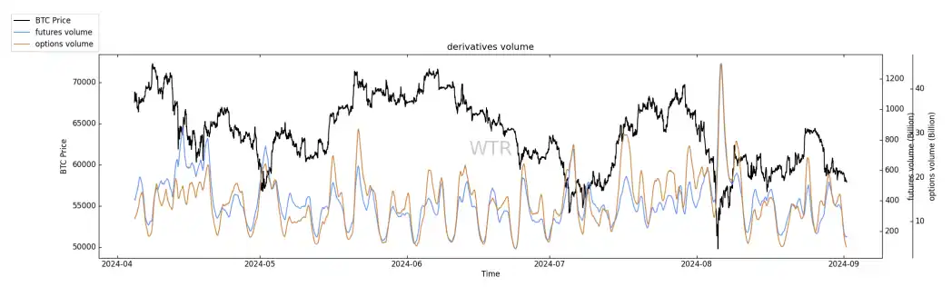 衍生品成交量再次触及底部区域,市场在酝酿下⼀次波动。