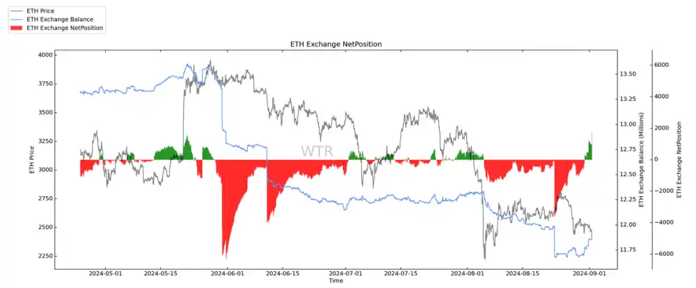 ETH 随着市场的低迷情绪,逐渐开始流入⼀些筹码等待抛售。