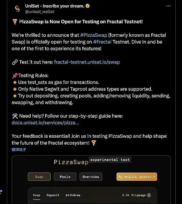 ● PizzaSwap? 现已在 Fractal Testnet 上开放测试!