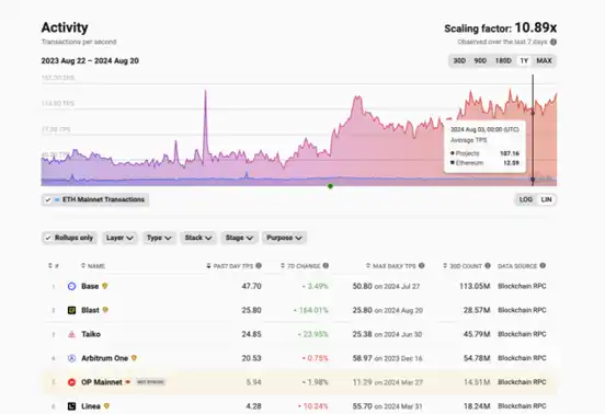L2beat 的图表很好地展示了这一点:随着时间推移,交易持续增长。