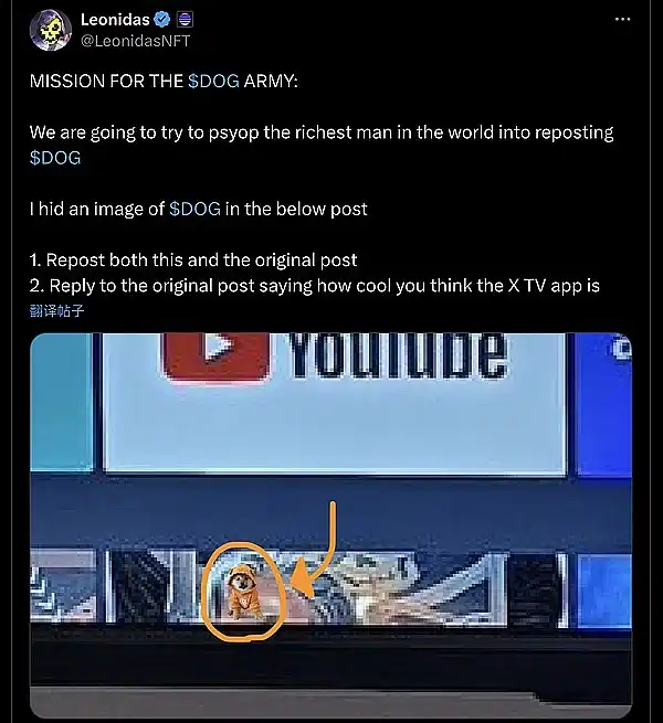 ● $DOG 的 Logo 在 X 电视应用程序展示 @elonmusk 刚刚推出了 X 电视应用程序,以取代有线新闻和主流媒体。by @LeonidasNFT
