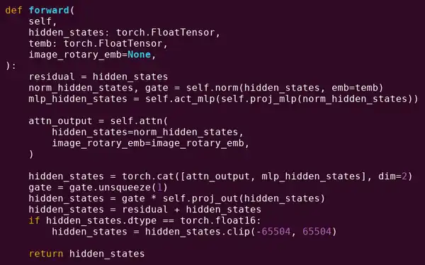 我们在这里看到了什么?我们看到了用 Python 编写的相对少量的「业务逻辑」,它描述了正在执行的操作的结构。在实际应用中,还会有另一种类型的业务逻辑,它决定了诸如如何获取输入以及对输出执行的操作等细节。但是,如果我们深入研究每个单独的操作本身(self.norm、torch.cat、 、*、self.attn 内部的各个步骤……),我们会看到矢量化计算:相同的操作并行计算大量值。与第一个示例类似,一小部分计算用于业务逻辑,大部分计算用于执行大型结构化矩阵和向量运算——事实上,大多数只是矩阵乘法。