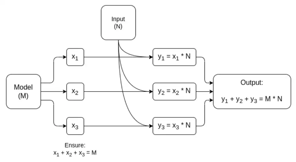 矩阵乘法专用 MPC 的简化图,这是 AI 模型推理中最大的组件。请参阅本文了解更多详细信息,包括如何保持模型和输入的私密性。