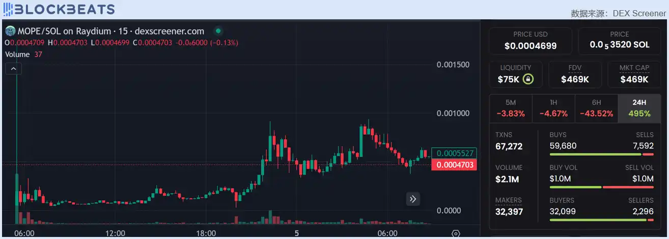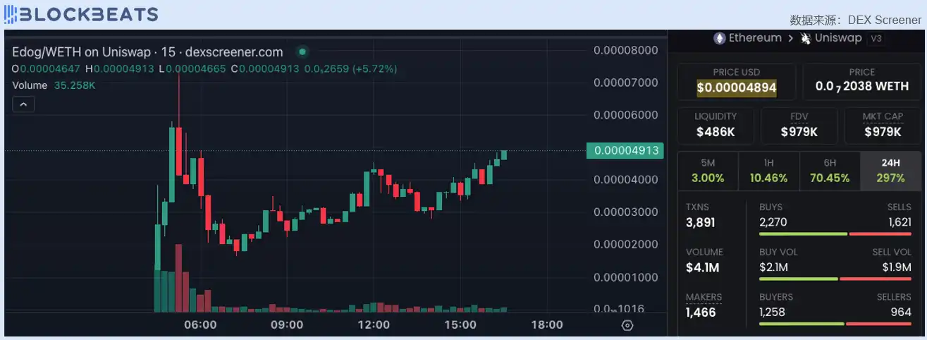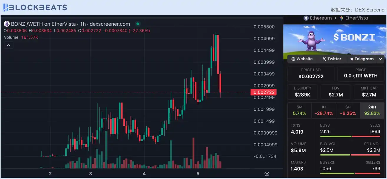 每日 meme 市场热点及资金动向,按交易量/市值比和 4h 盈利筛选并排列,数据来源:DEX Screener