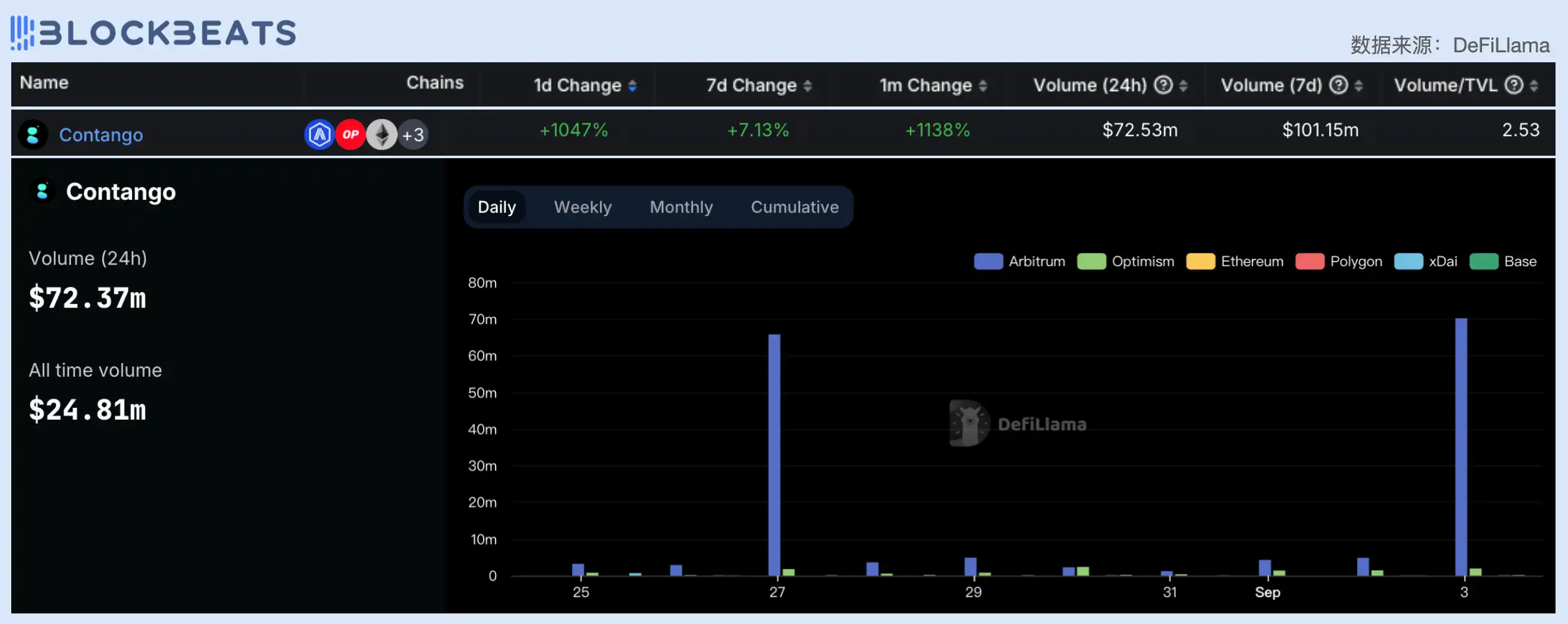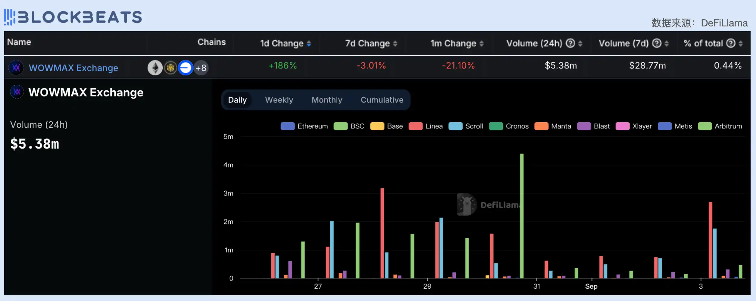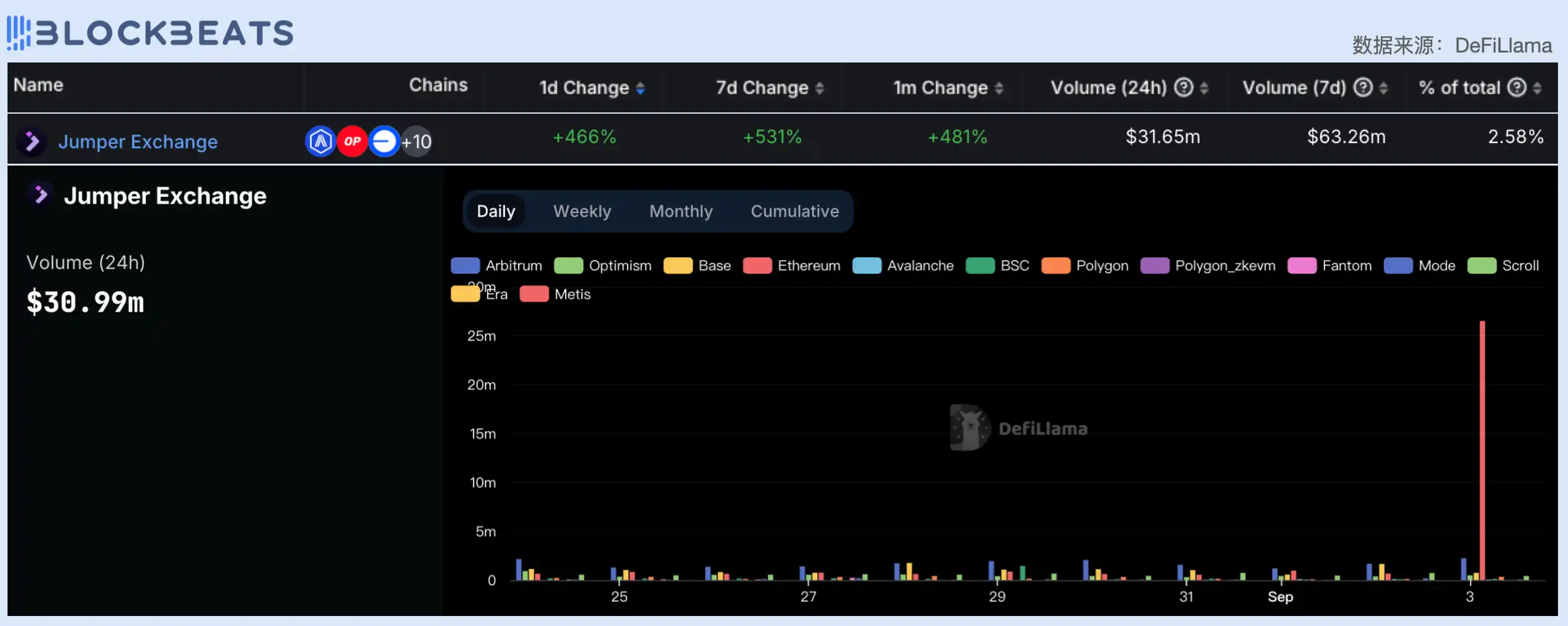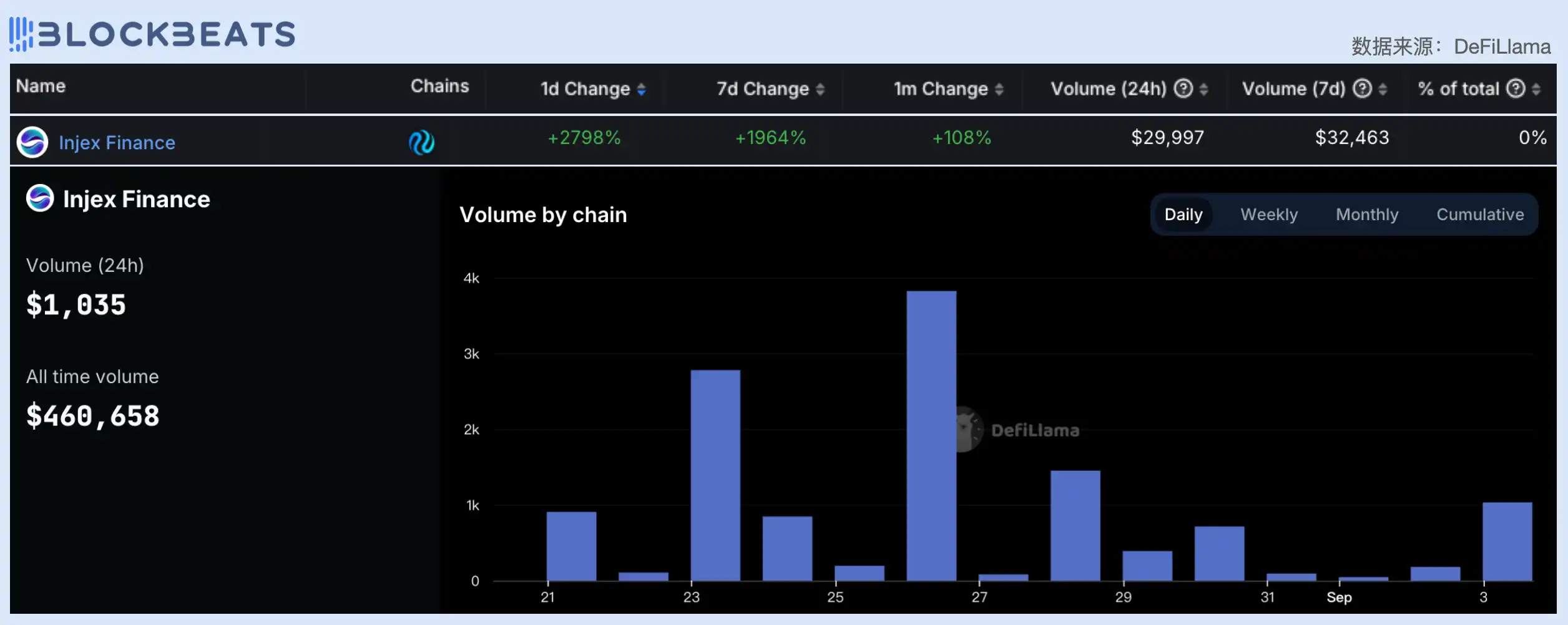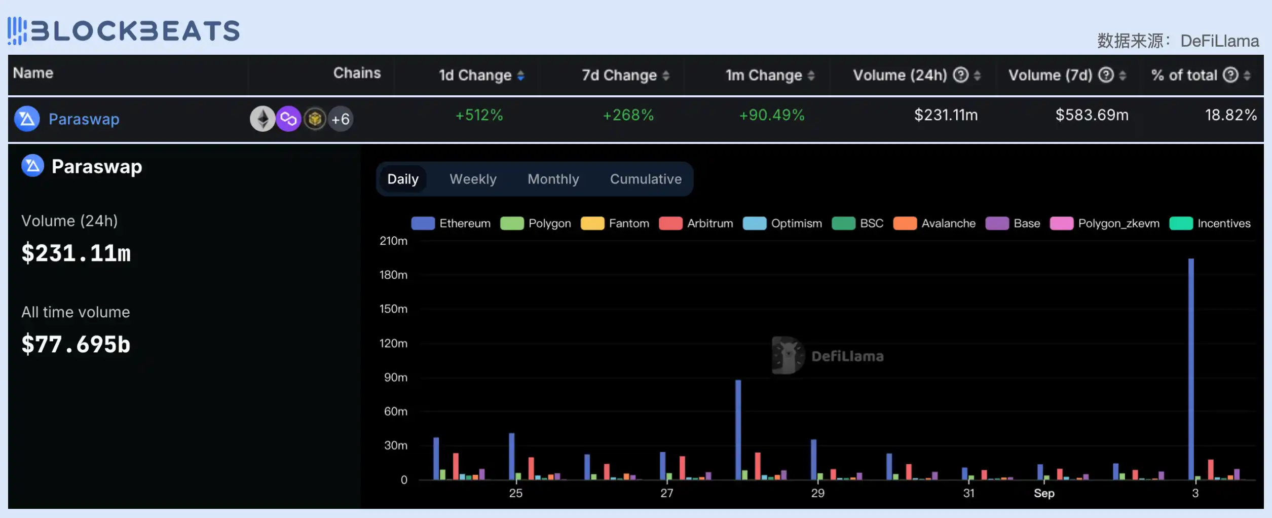 每日 DeFi 市场资金及交易量异动情况,按 DEX 聚合器及 Perp DEX 交易量及增长幅度筛选并排列,数据来源:DeFiLlama