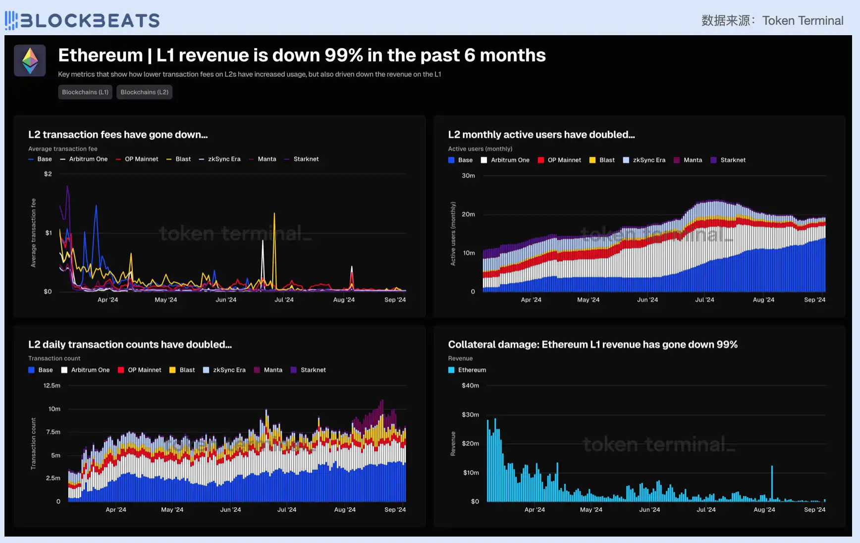1. 以太坊 L1 盈利过去 6 个月已缩减 99%