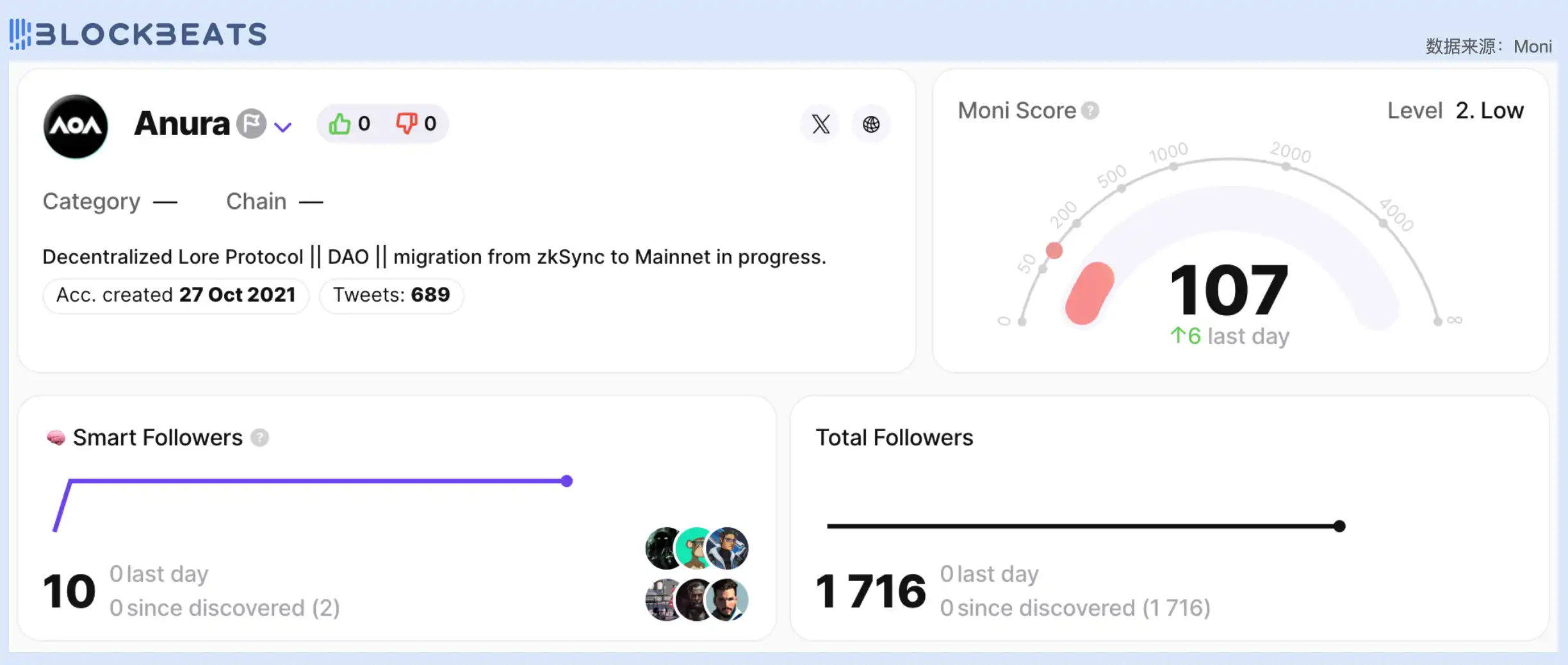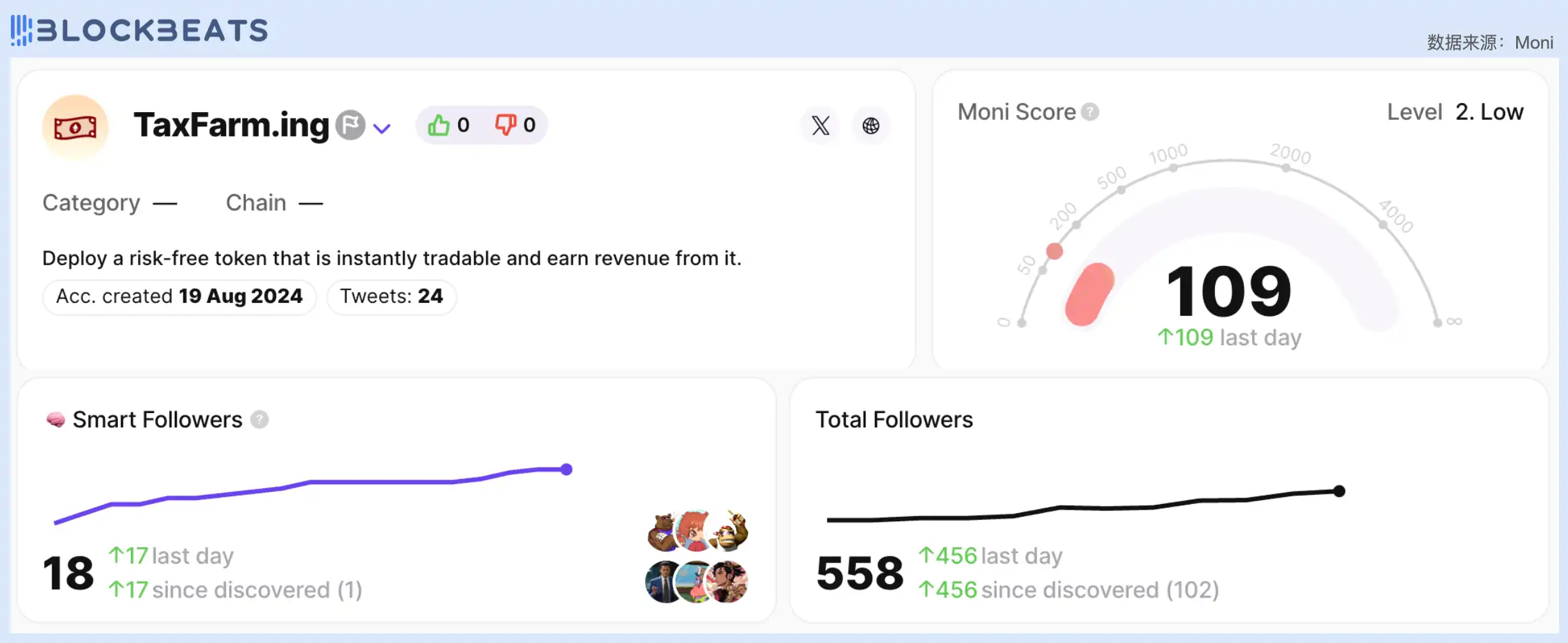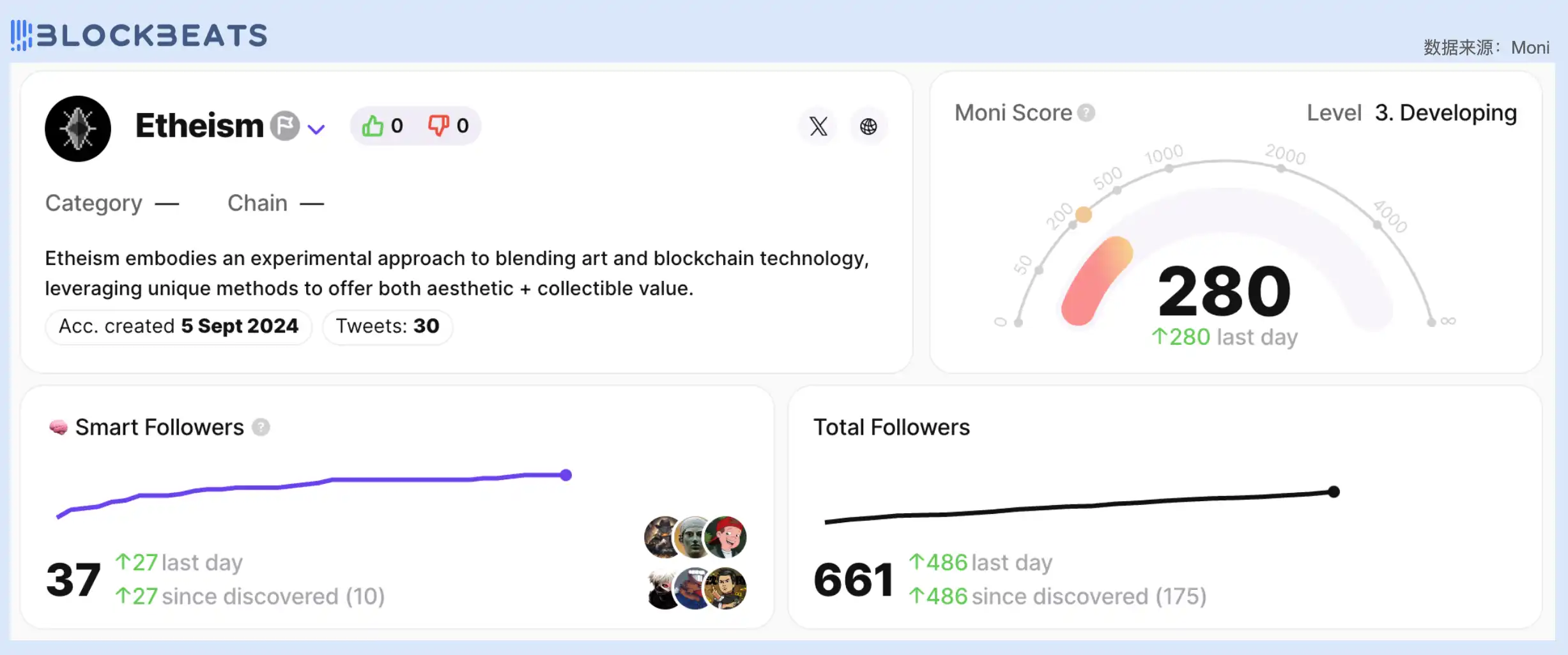 每日新项目或社区关注动态,按 X Alpha 帐号关注数量和增长筛选并排列,数据来源:getmoni.io