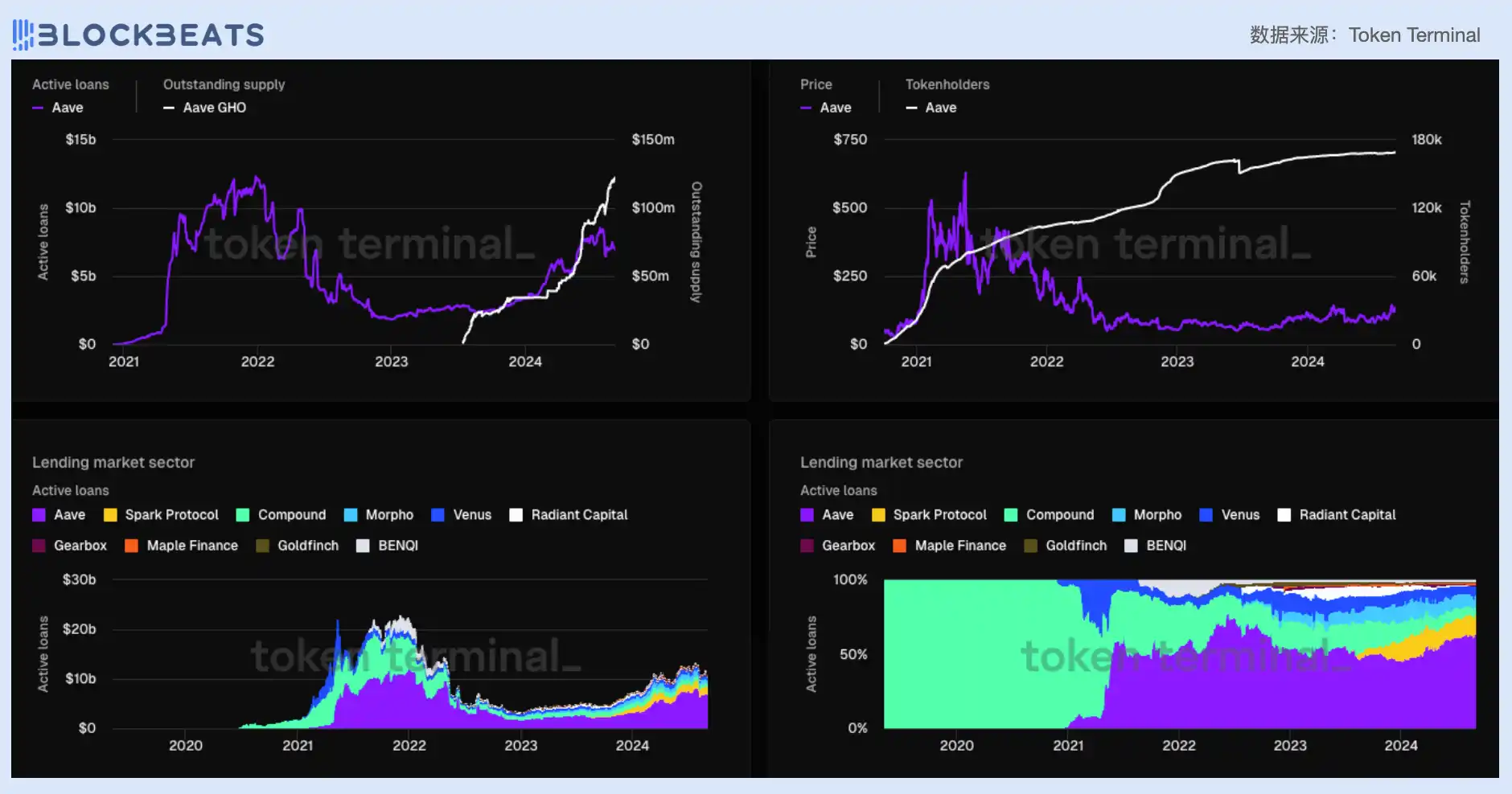 2.Aave 协议借贷和代币持有者数量稳定增长
