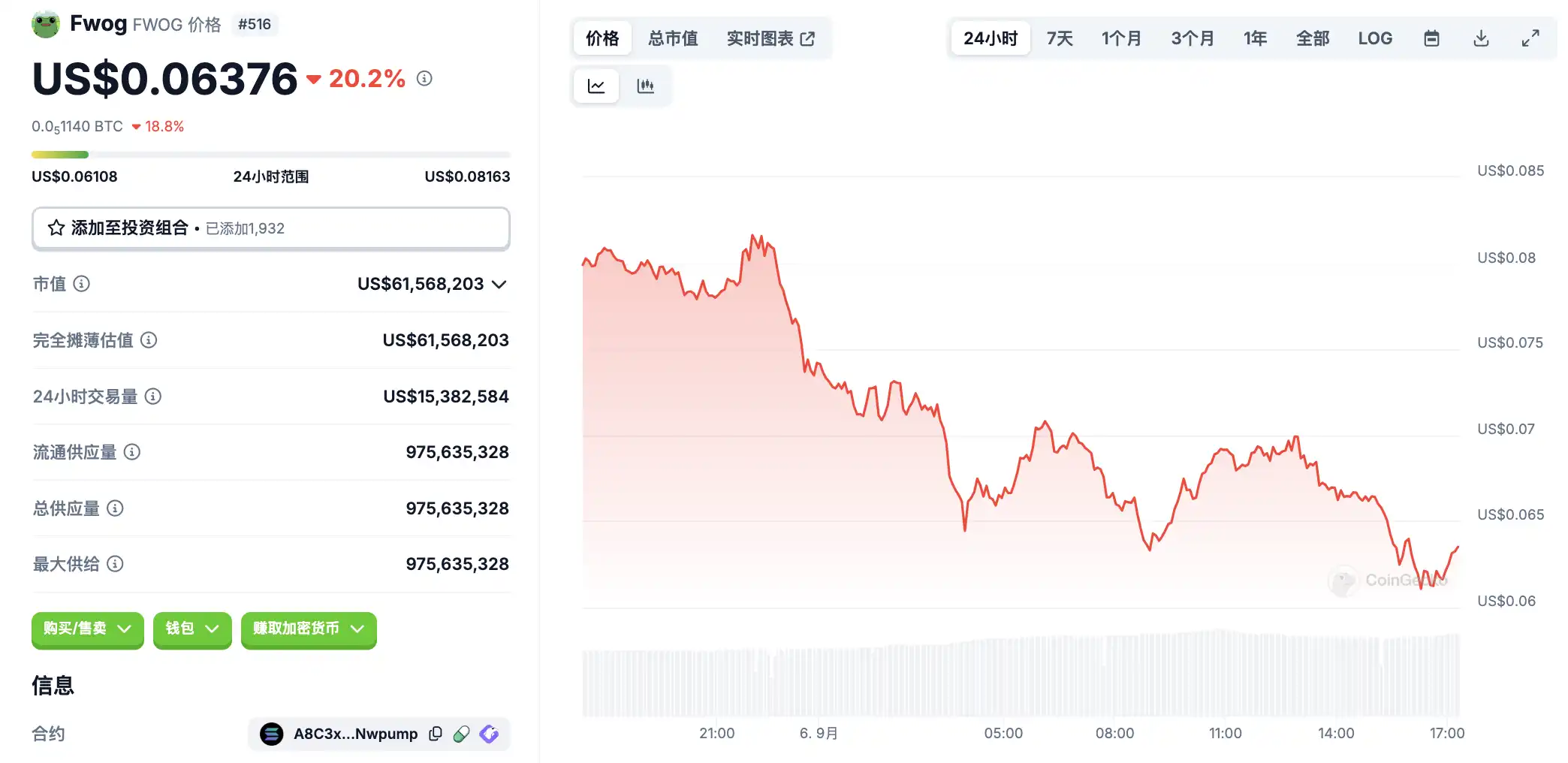 9 月 6 日代币波动情况,按交易量筛选并排列
