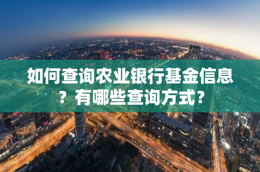 如何查询农业银行基金信息?有哪些查询方式?