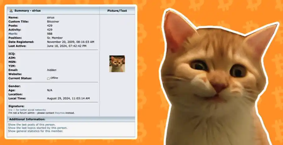 Sirius,也称为 Martti Malmi,是比特币的早期贡献者,也是比特币论坛(bitcointalk.org)的创始人,并因第一个通过个人头像 (PFP) 将猫带入加密货币领域而闻名。Solana 上的 SIRIUS 上线于 27 日,昨日涨幅超 30 倍,市值最高突破 1600 万美元,但目前已经据高点回落 66%。而以太坊上今日上线的 SIRIUS 则保持着上涨的走势。