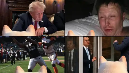 Point of dog——狗的视角,该图片源自一张狗头背影,和其他猫狗 meme 不同的是,POD 是以狗狗作为第一人称视角,看待其他 meme 或者事件,「角度」相对新颖,在昨夜至今晨出现了不少二创作品。