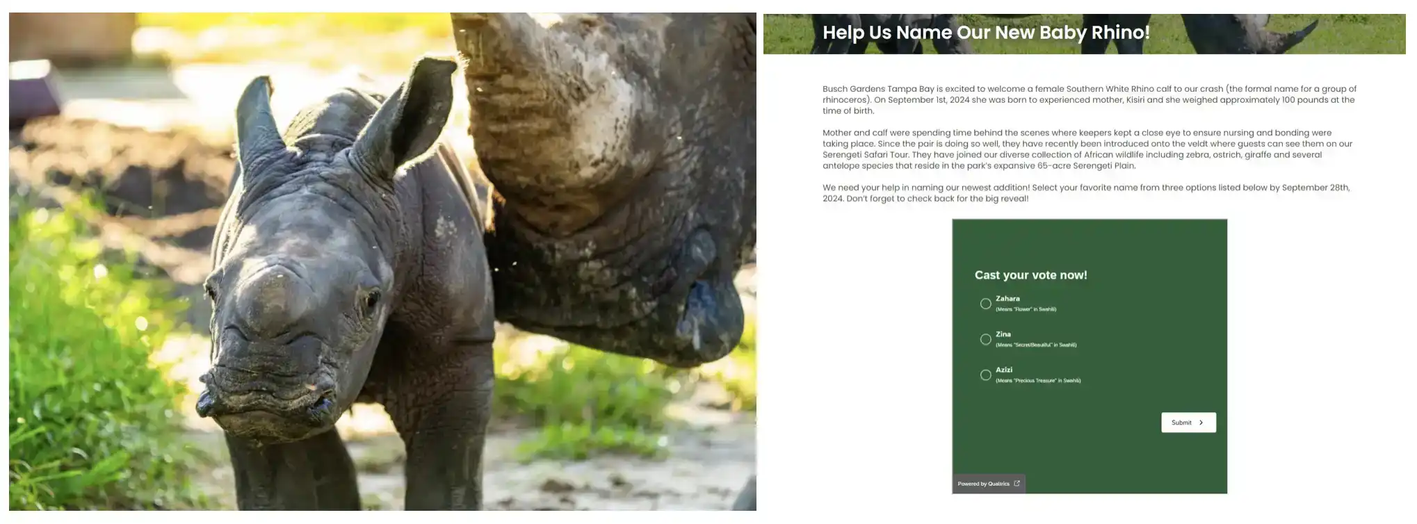 犀牛宝宝取名字后续:投票结果即将公布
