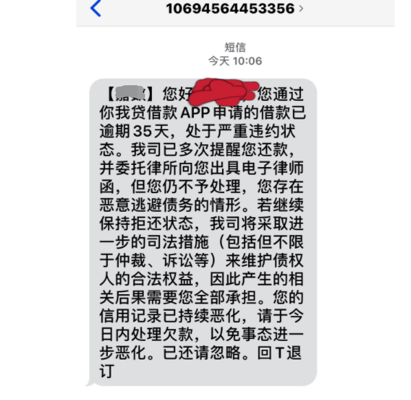 1、任何106开头短信,只要包含“电话号码”,“退订回T”内容的,都是催收从业人员编辑的,该短信的真实性一律为假,为施压短信,所以不要再来加我私信了。
