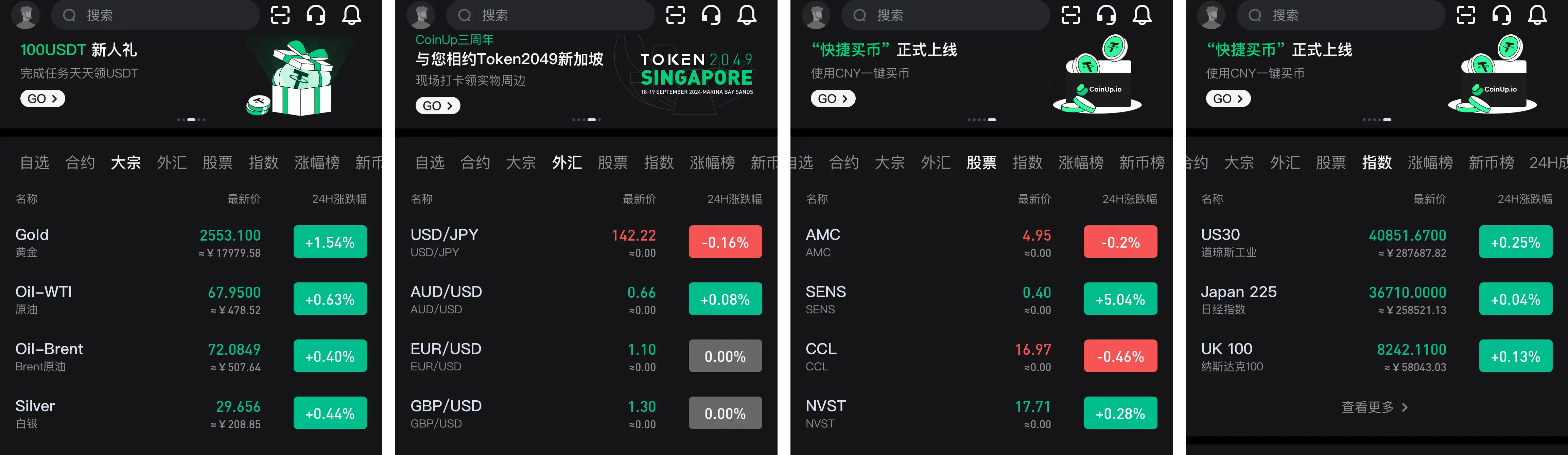 当然,衍生品本身就是一个较为复杂的金融工具,它不仅可以为投资者提供多样化的策略选择,还能够通过杠杆机制放大投资回报。CoinUp.io 敏锐地捕捉到了这一市场需求,构建了一个多资产的衍生品交易平台,不仅涵盖加密货币,还将其交易扩展到外汇、股票和黄金等合规金融产品。这一举措不仅满足了加密资深投资者的需求,也吸引了那些对传统金融产品熟悉且希望拓展加密市场的用户。
