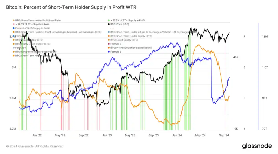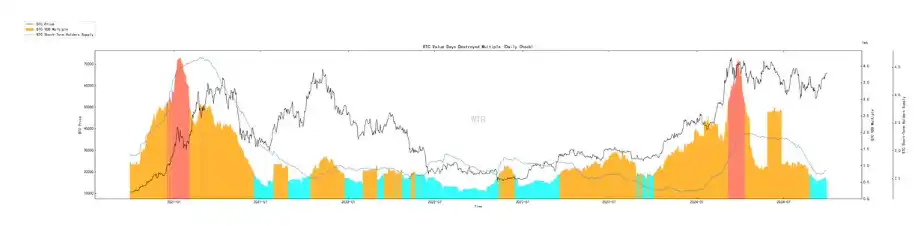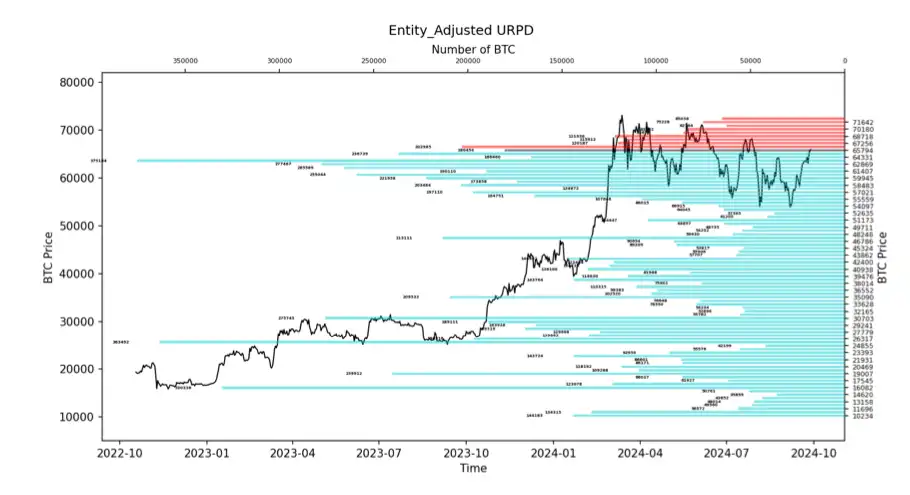 阶段性存量顶部显示着大概价格在 70,000 左右;这意味着在这个价位可能是长期参与者愿意或者可能抛售的价格,但并不是长周期的顶部,可能是阶段性的。