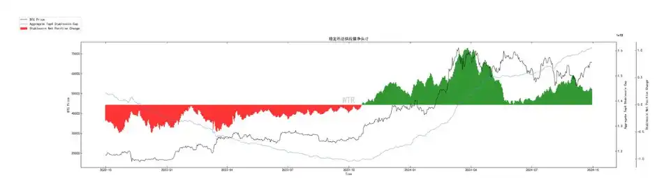 当前稳定币供应量仍在持续上升,可能场内会偏向于积累或者蓄力的阶段。