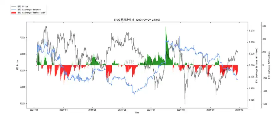 4. 交易所净头寸整体呈现 BTC 中量流出,ETH 中量流入累积。