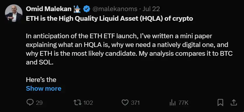 ·ETF 的可能性低,无论是从监管角度还是需求角度。@malekanoms 还指出了一些我认为在传统金融角度上相关的观点(加上来自 @0xmert 的反驳):