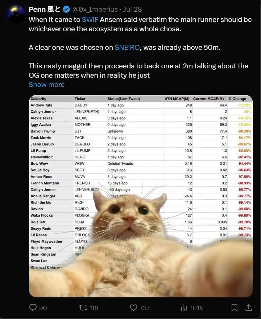 我并不认为 KOL 在 X 上的帖子能代表更广泛的用户基础,在当前的狂热中他们很容易进入一个头寸,宣传他们的代币,利用追随者获利,不断重复这一过程。这里绝对存在生存者偏见——赢家的声音远大于输家的声音,从而创造出扭曲的现实感知。