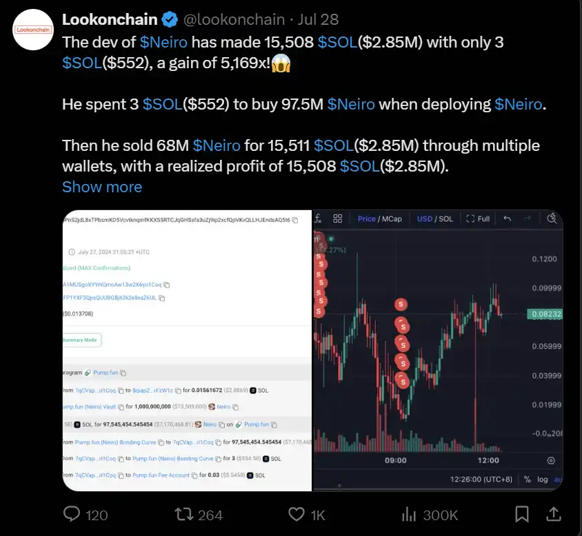 在 X 上进行快速搜索也显示出猖獗的内幕交易以及开发者在买家身上抛售代币的证据: