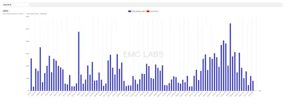 分析所有链上 BTC 的分布,可以发现截止 9 月 29 日超过 87% 的 BTC 处于盈利状态。5.4 万~7.3 万「新高整理区」分布筹码为 624 万枚,与截止 8 月 31 日相比增加 23.83 万枚。目前最大持仓价格已经由 8 月底的 58893 美元提升至 65518 美元。价格重心的持续上移有助于减轻价格上行过程中的抛压。