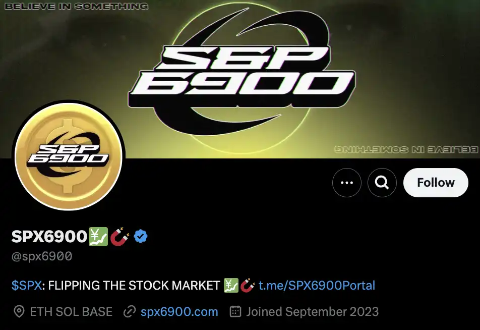 看到 SPX6900,你会想到 S&P 500(标准普尔 500 指数),SPX 的概念是「FLIPPING THE STOCK MARKET」翻转股市。持有 SPX 的人会自发制作 SPX6900 的图片或视频。在有点穿模的动漫少女造型、持续滚动的 6900 符号中,大概可以拼凑出一个叙事:可爱少女拯救币圈。