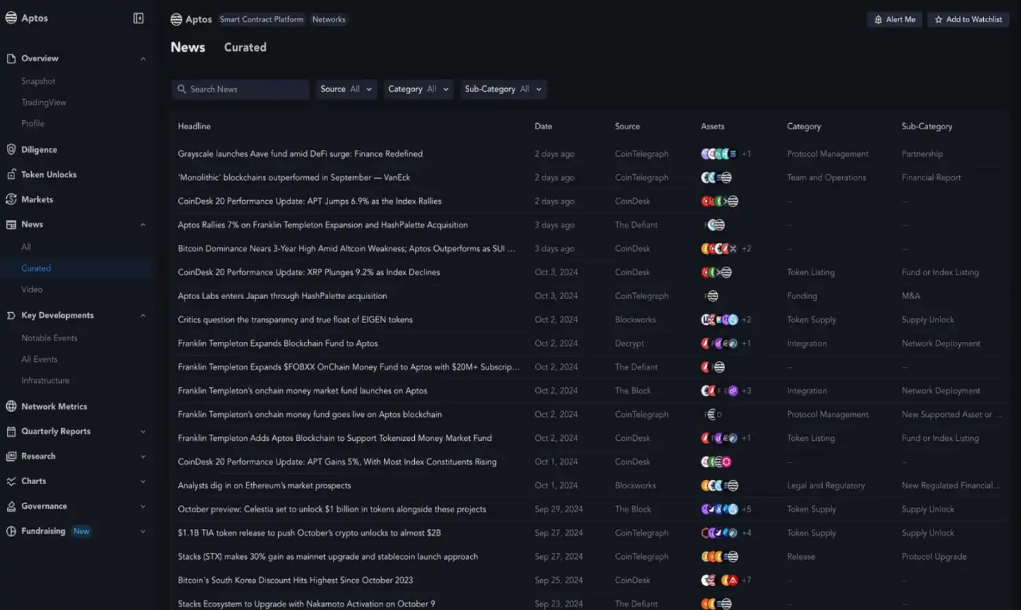 Aptos:Messari 上的最新新闻仪表盘。