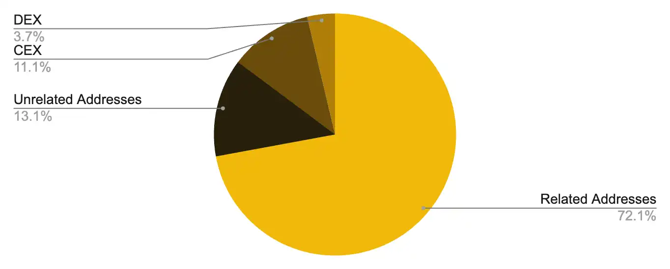 乍一看,代币 Z 似乎分布广泛,持有该代币的地址数接近 200,000 个。然而,仔细检查链上交易就会发现,这些地址中有许多是相互关联的,可能表明所有权归属单一实体。这种分配策略似乎旨在人为地增加代币持有者的数量。