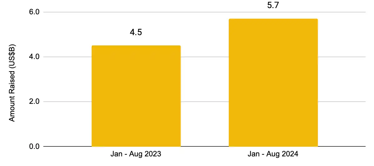 图 4:今年迄今,加密货币行业的风险投资基金融资额已达 57 亿美元,同比增长了 26.6%