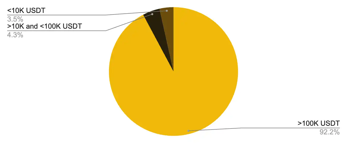 此外,即使在不相关的地址中,大部分代币也由少数大型持有者持有,这些持有者通常被称为「巨鲸」。散户仅占该群体的 3.5%,所持代币仅占代币总供应量的 0.5%。