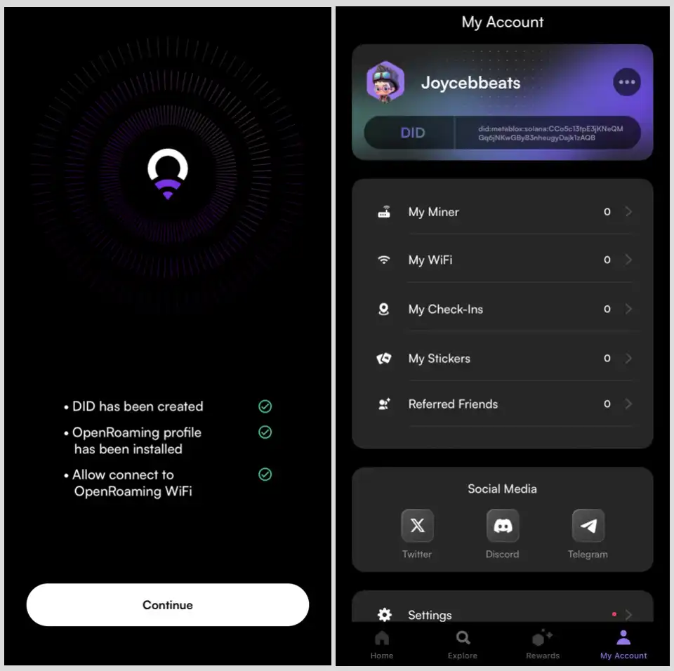 相比之下,Roam 通过引入去中心化身份(DID)和可验证凭证(VC)技术,大幅提升了用户隐私保护。用户在 Roam 的 WiFi 热点连接时,身份验证过程依赖于区块链上的加密技术,确保只有在用户授权的情况下才会验证其身份信息。