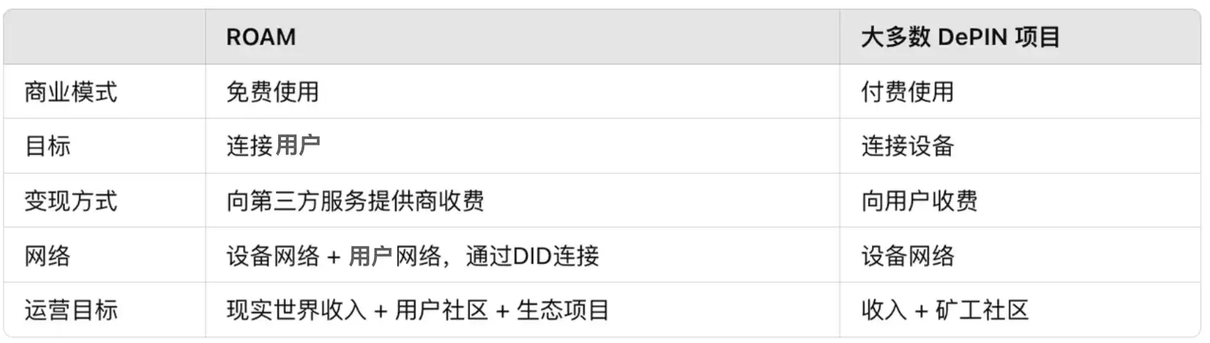 在这种背景下,Roam 有望发展成为 DePIN 领域中的一种「公共物品」。虽然其盈利模式依赖于第三方商业服务的收费,但其开放、共享、用户为先的特点赋予了它公共物品的特质。就像互联网的基础设施一样,Roam 通过去中心化的技术将用户和设备连接起来,未来或许能在 DePIN 生态中发挥类似于公共物品的作用,服务于更广泛的用户群体,成为推动整个去中心化网络发展的关键力量。