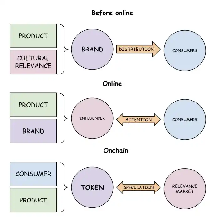 meme 币向我们展示了品牌与分发渠道可以被有效捆绑在一起,这也是 meme 币的核心——它们是极具效率的分发机器。尽管我们今天看到的 meme 币形式还非常原始,它们更多依赖短期的快速拉高出货而缺乏可持续性,但它们为未来文化币的演变奠定了基础。价格上涨无疑是最有效的营销手段,而在 meme 币的逻辑中,价格上涨不仅是手段,也是目的。但对于未来的文化币,价格上涨只是通往更大目标的工具,就如同以太坊、Solana 或比特币那样。