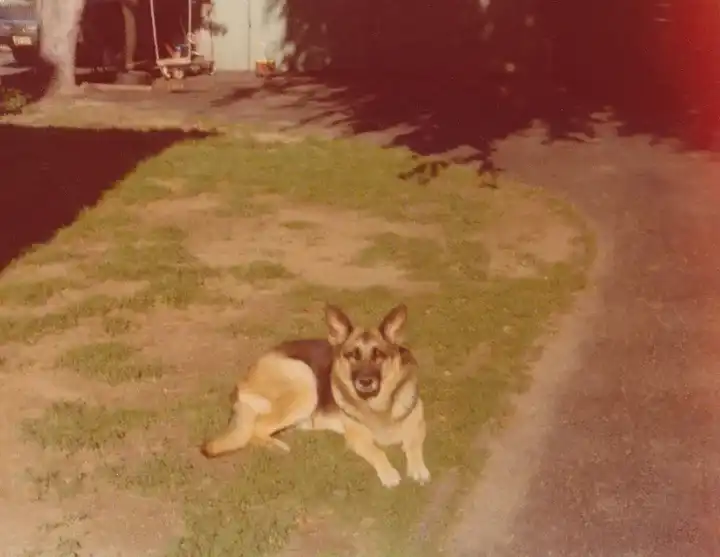 Angela 给这只混德国牧羊犬取名叫 Mickey(米奇),因为米老鼠是她当时唯一知道的美国卡通动漫人物。时间慢慢过去,Mickey 成为了她生活中重要的伙伴。