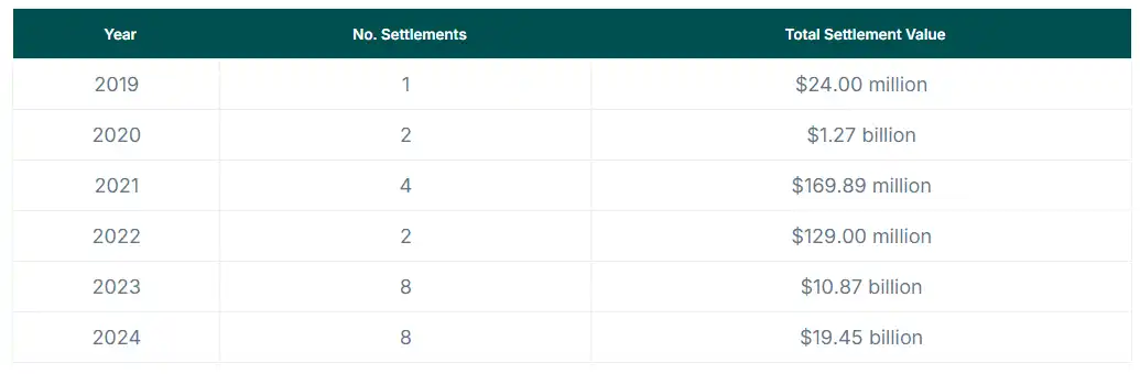 过去两年执法行动激增,仅今年和解金超 194 亿美元