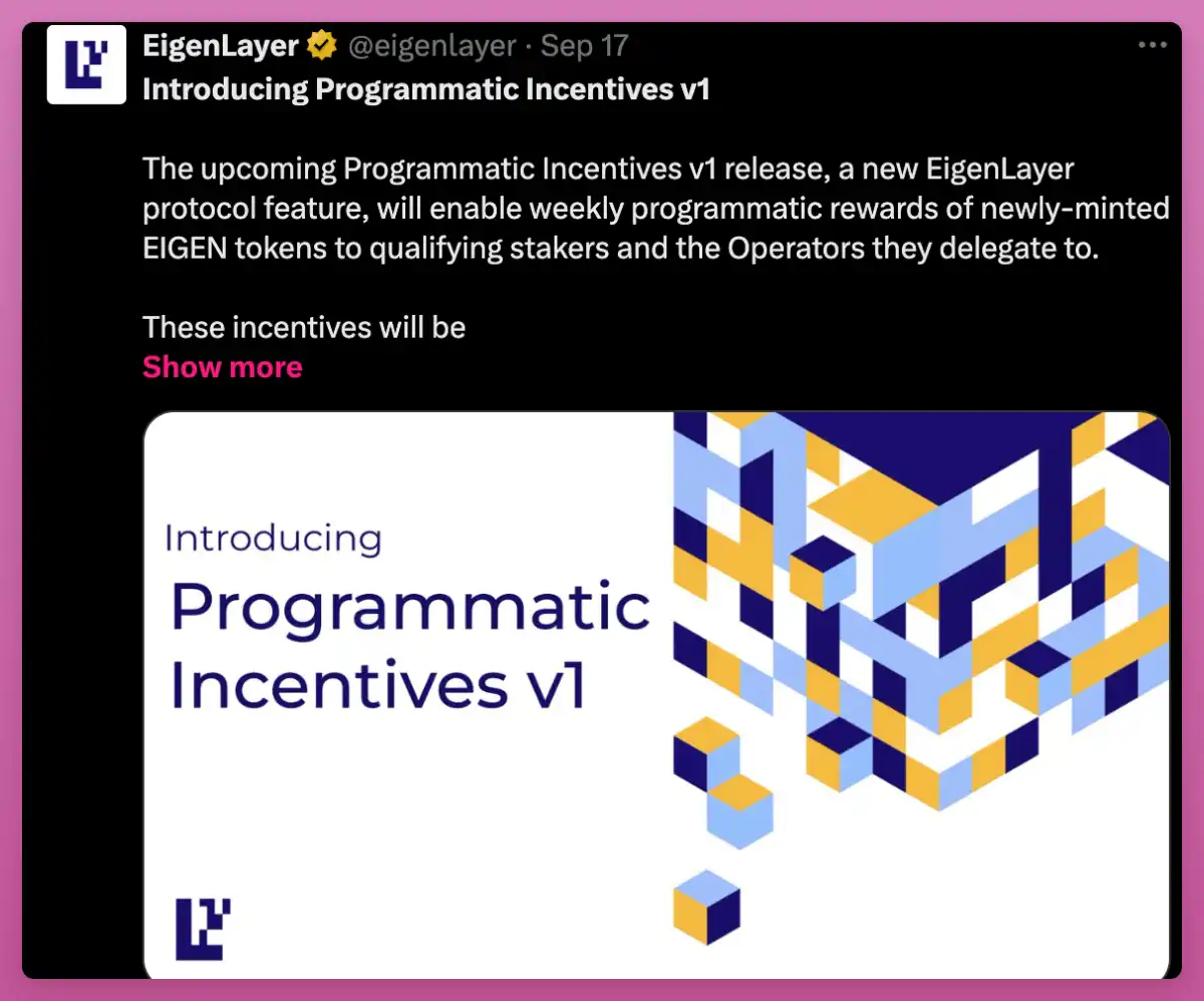 虽然积分机制并未完全消失,但市场情绪和使用率的下降已经显现。例如,Eigenlayer 决定不再进行第三季空投,而是选择「程序性激励」,这实际上就是流动性挖矿的另一种说法。