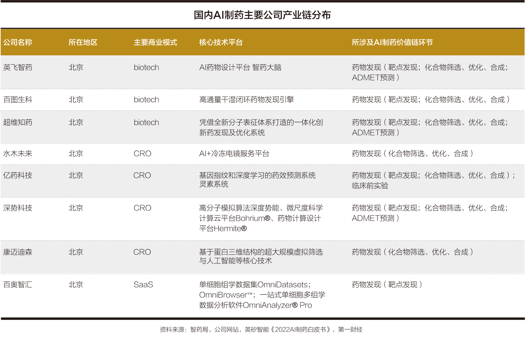 目前传统制药公司在AI技术已有涉猎,但步伐相对谨慎,初创公司是国内AI制药产业的主力军,其中有不少已经在药物的临床前研究方面获得了不小的突破。